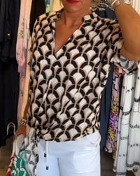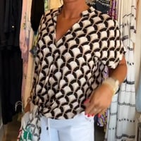 Short-sleeved V-neck printed casual top
