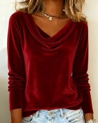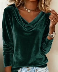 Velvet Solid Color Long-Sleeved Top